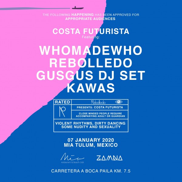 Rated R es una serie de eventos en los que Rebolledo (mitad del dúo Pachanga Boys y fundador del sello Hippie Dance junto a Superpitcher), presenta una serie de invitados bajo una línea musical muy cuidada que tanto caracteriza al productor Mexicano. En esta ocasión contará con GusGus en formato dj set, el trío WhoMadeWho y Kawas.